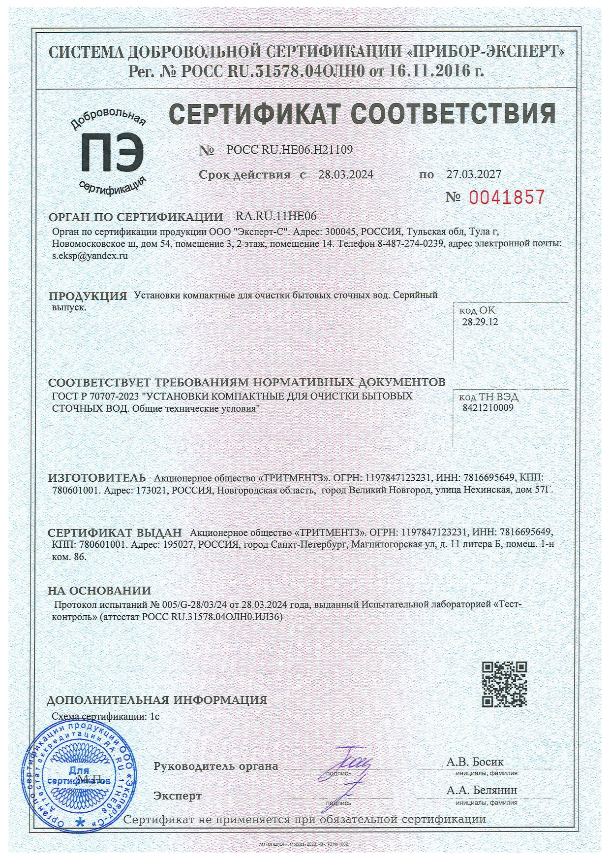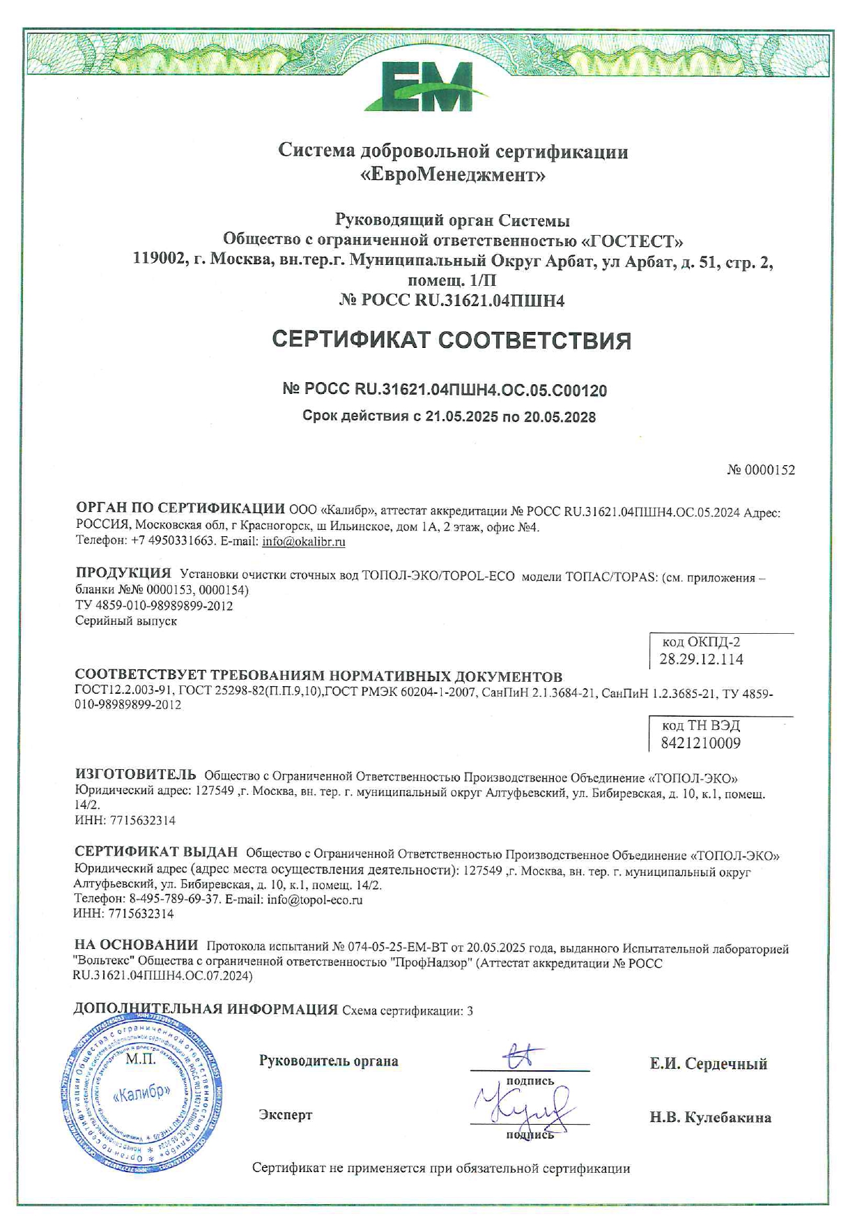 Сертификаты и экспертное заключение