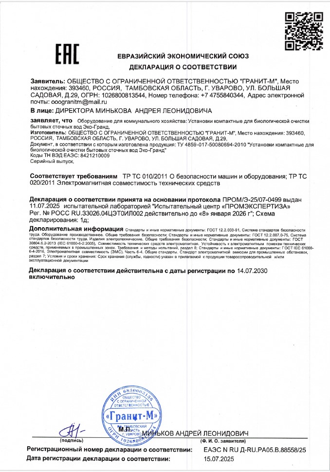 Объем сточных вод, поступающих в септик Астра 4 должен соответствовать ее производительности – 0.8 м3/ сутки. Разрешен сброс очищенных стоков после септика на рельеф местности и в водные объекты при соблюдении требований СанПиН 2.1.5.980-00. Очистные сооружения Юнилос Астра 4 не дают вредных выбросов в атмосферу.